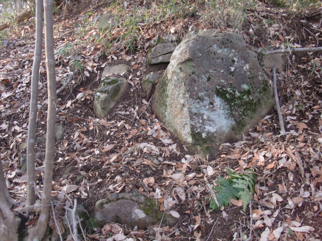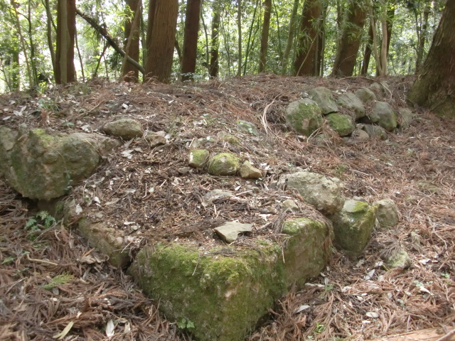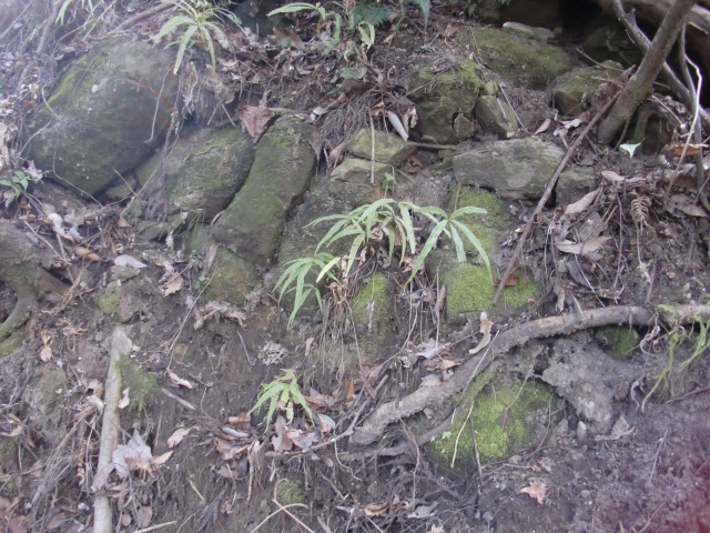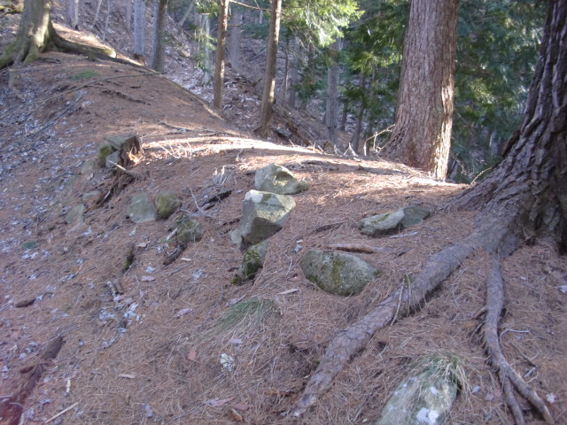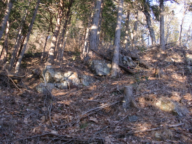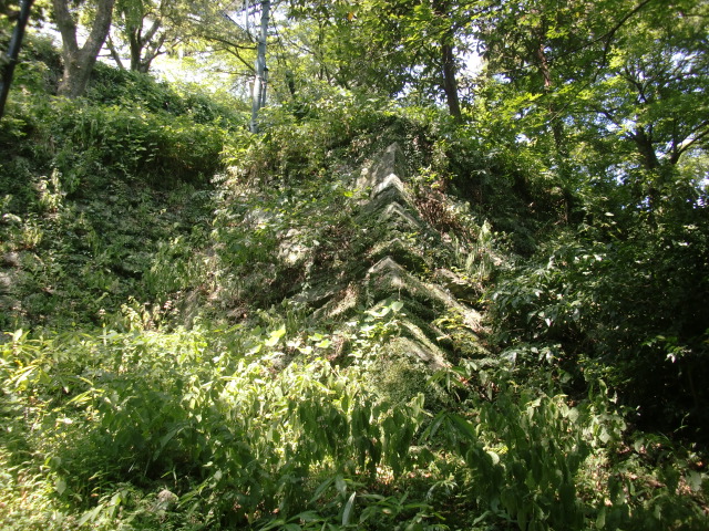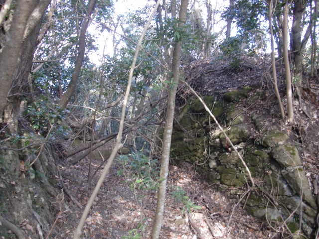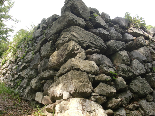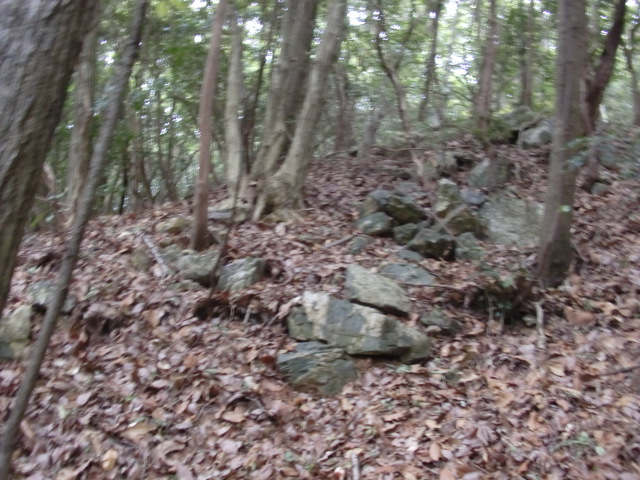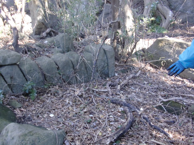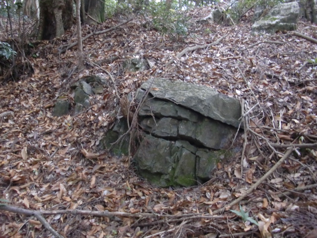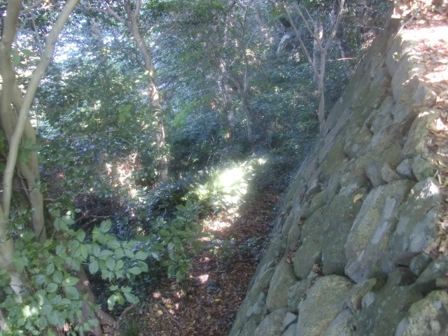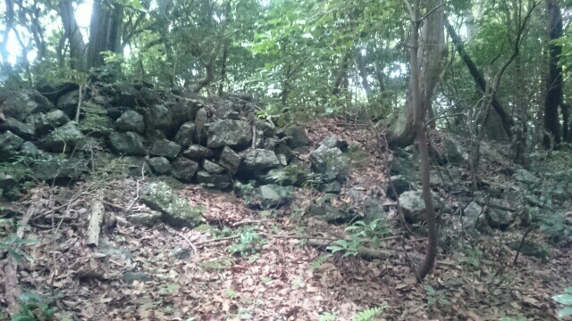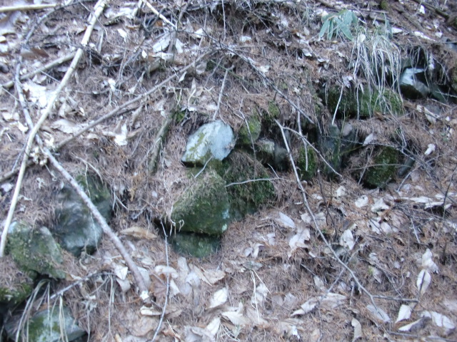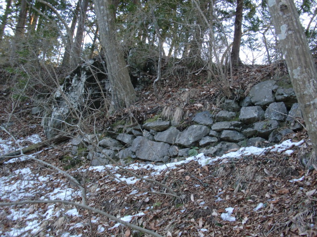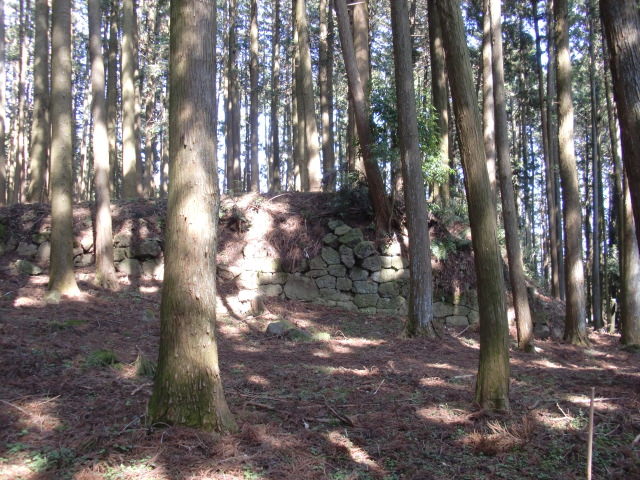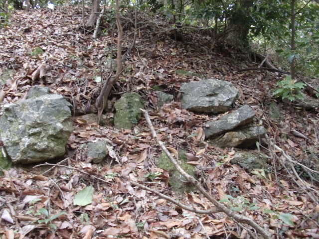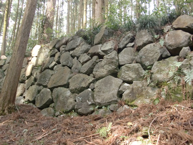 虎口から尾根郭の東側には随所に土留めの石積みが残ってます♪