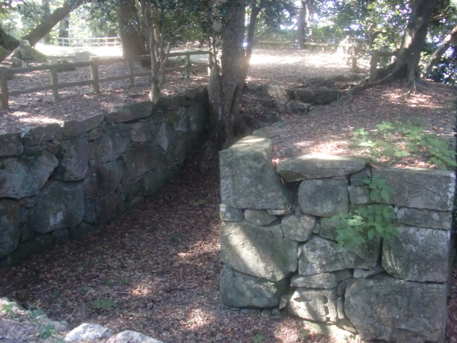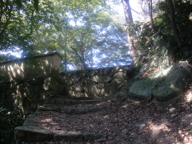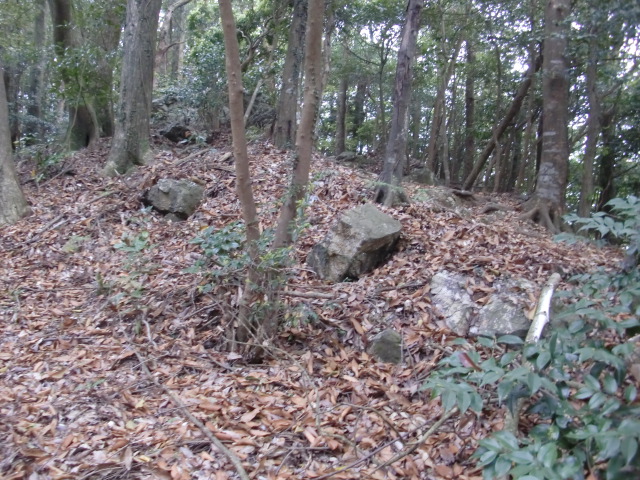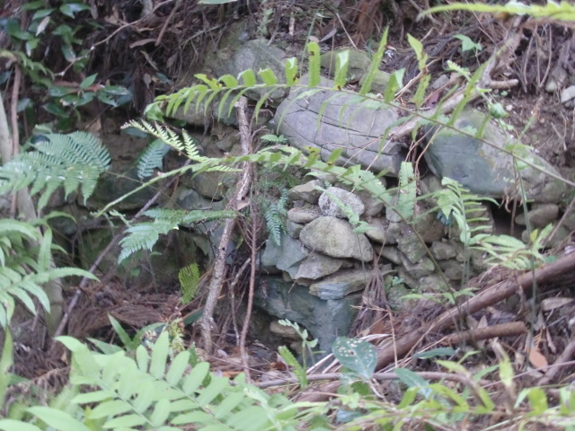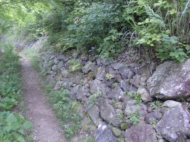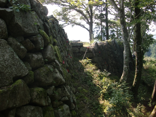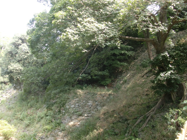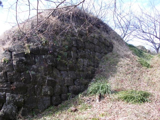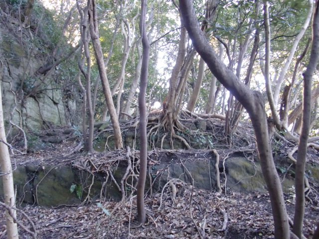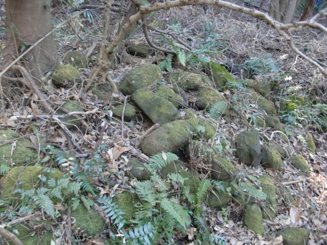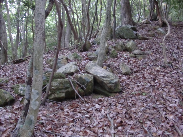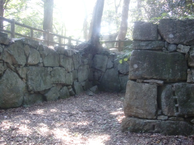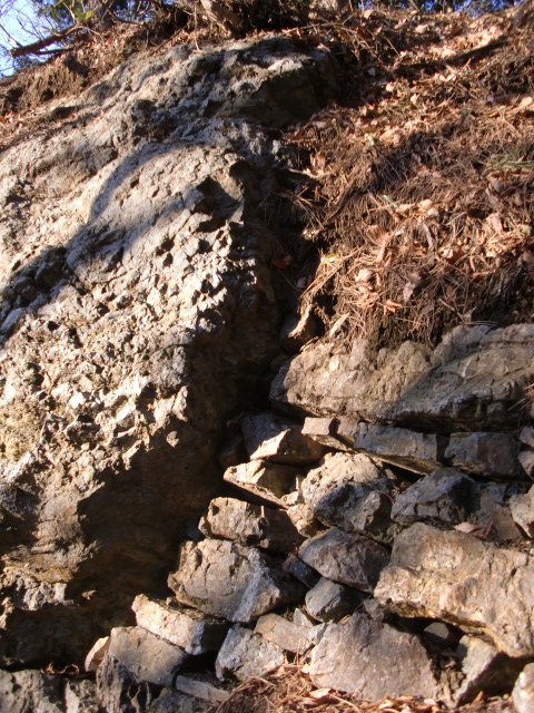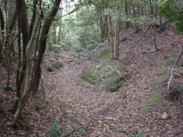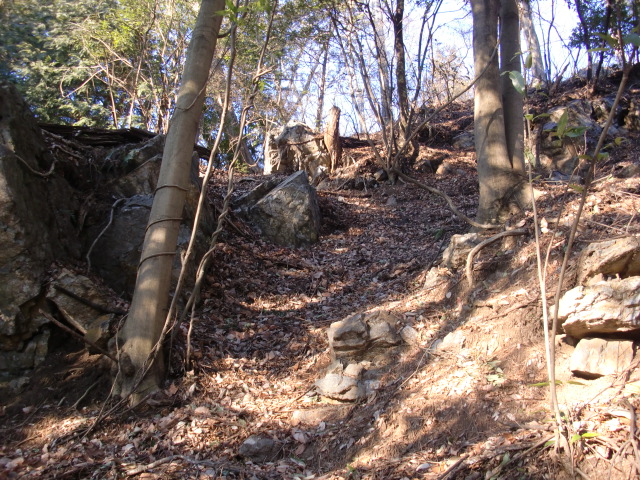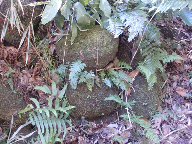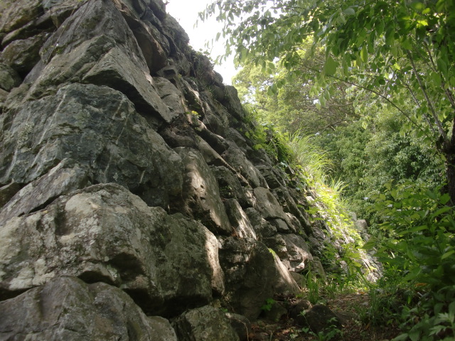 虎口から尾根郭の東側には随所に土留めの石積みが残ってます♪