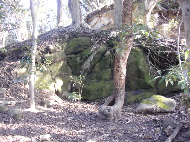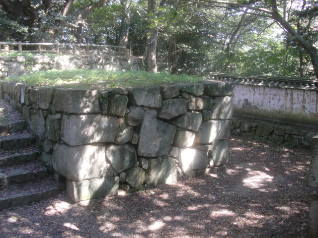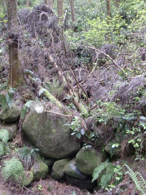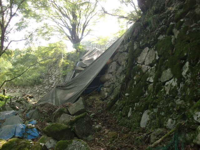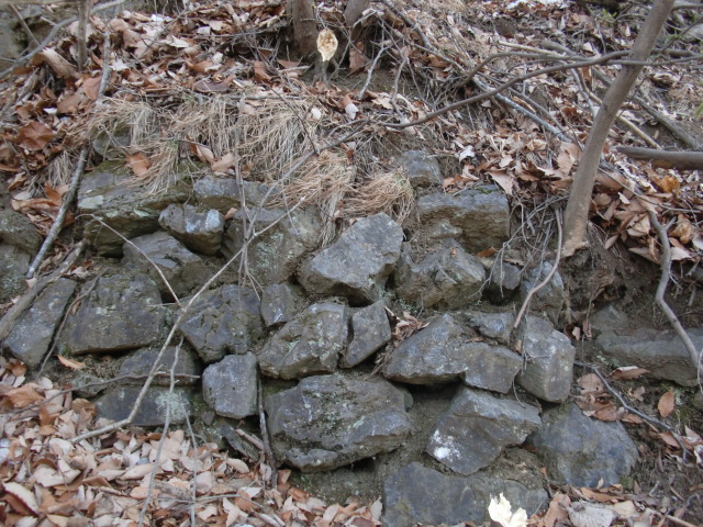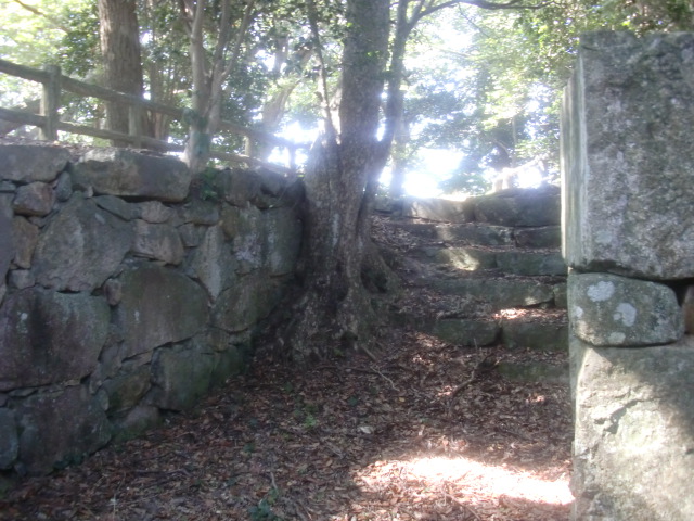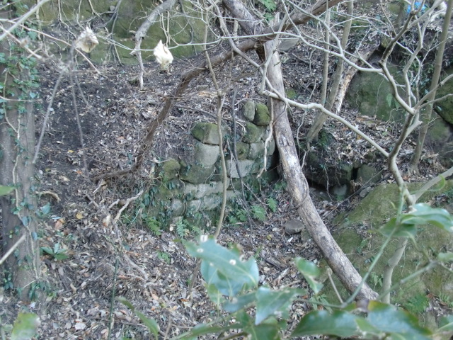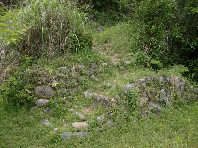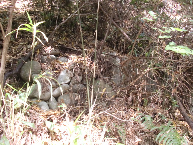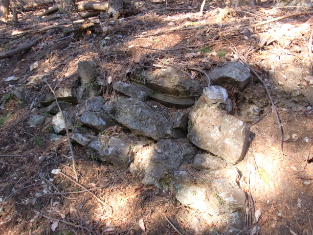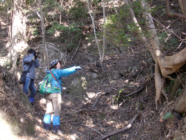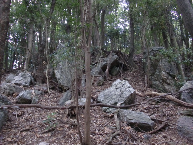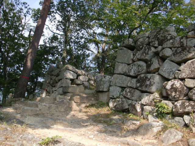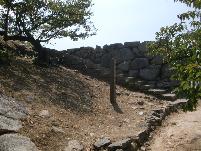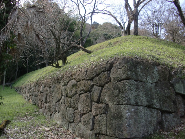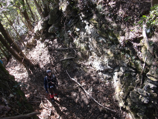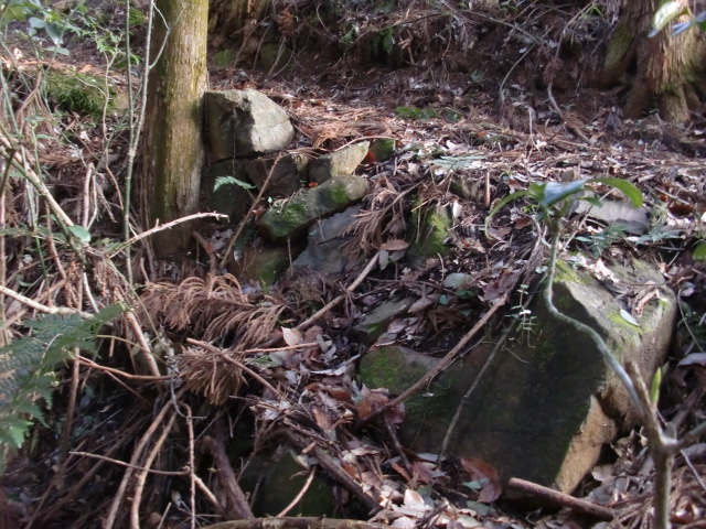 虎口から尾根郭の東側には随所に土留めの石積みが残ってます♪