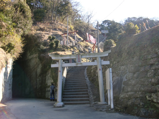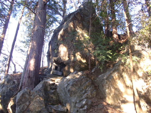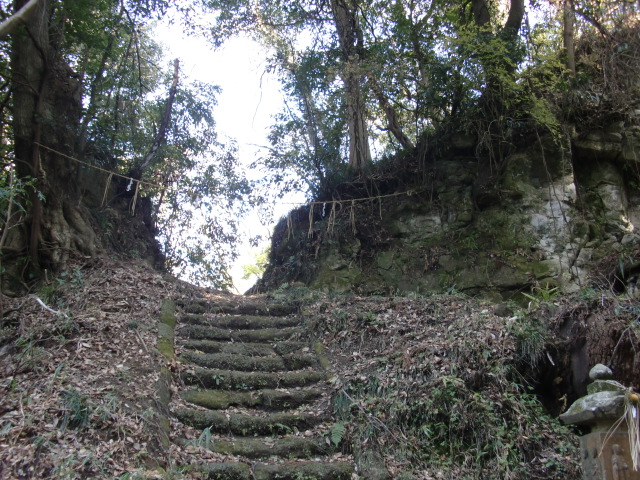 久留里城の駐車場へと向かう岩盤トンネルの上の細尾根を進むと神明社があり古城の城域となります♪