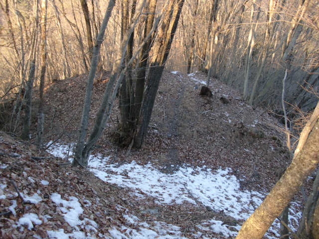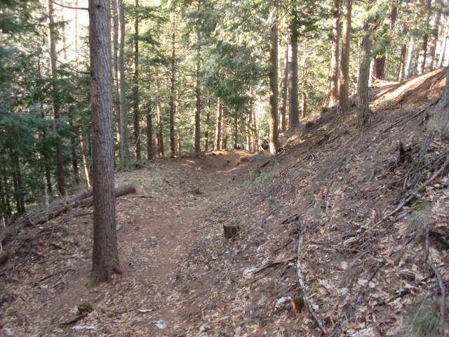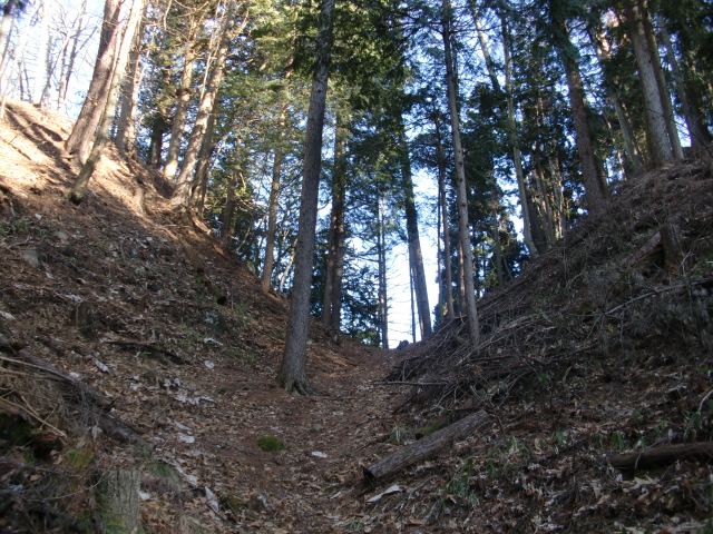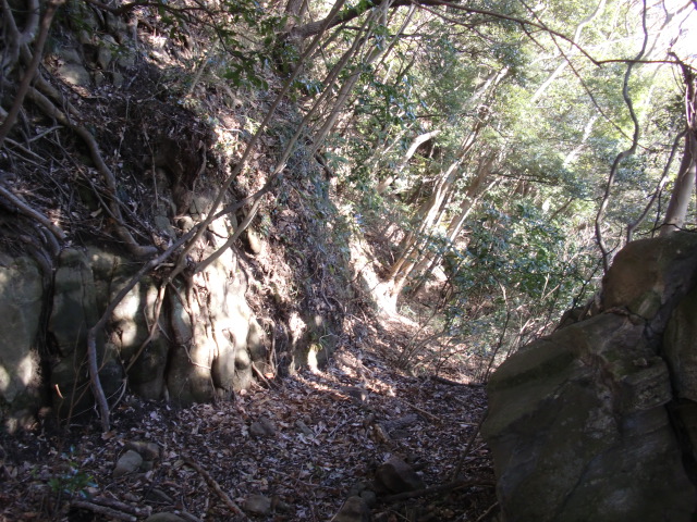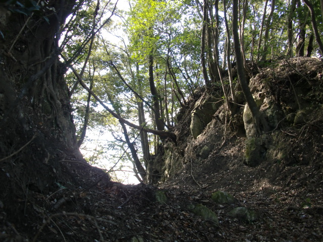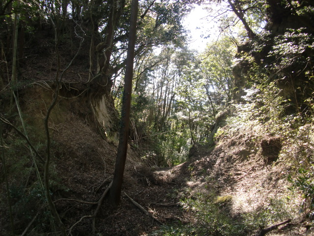 ルートは堀中を抜けて尾根の東側を進みますが・・・