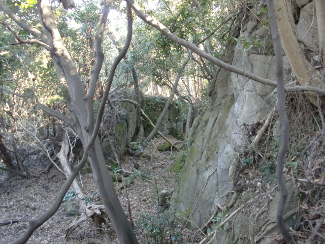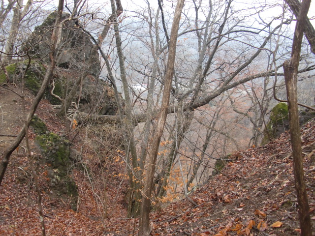 北尾根へと向かうと西側に虎口らしきものがありますが絶壁・・・