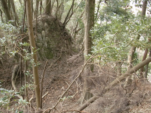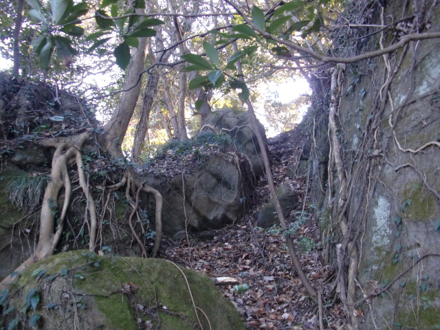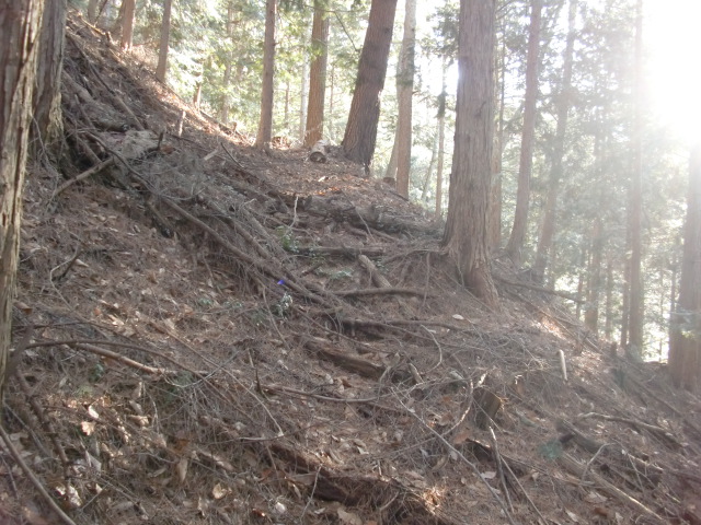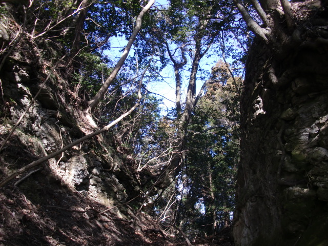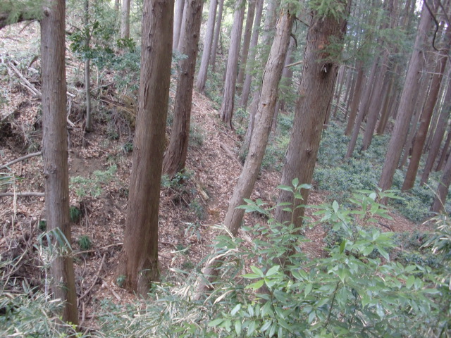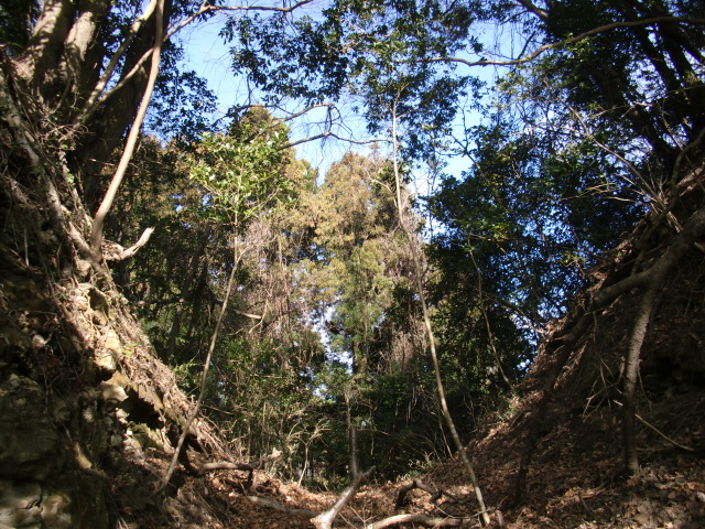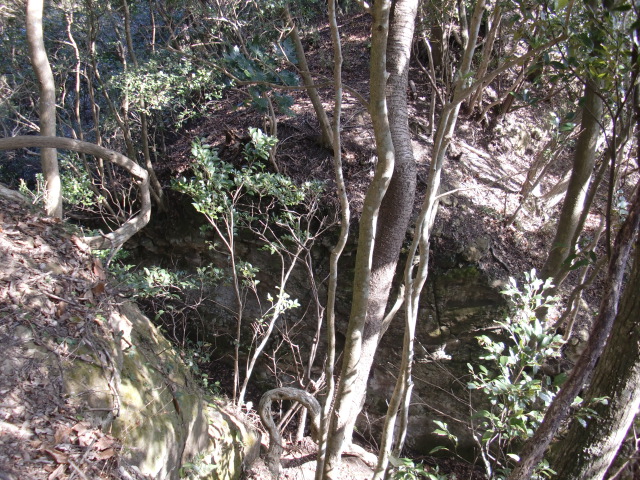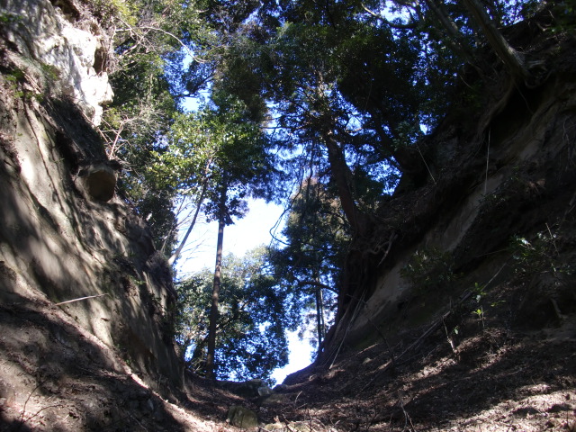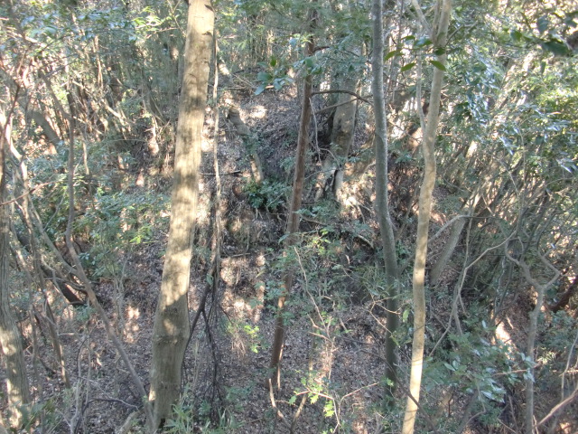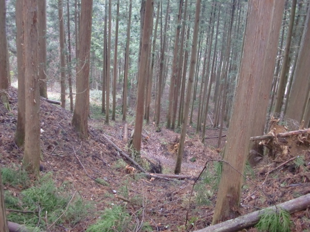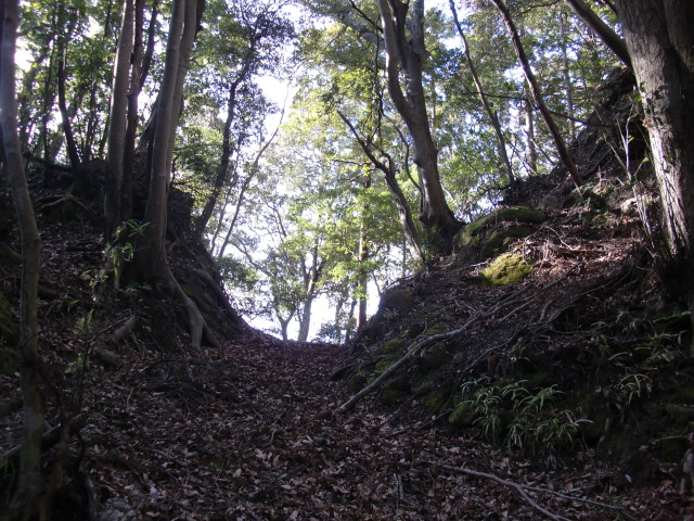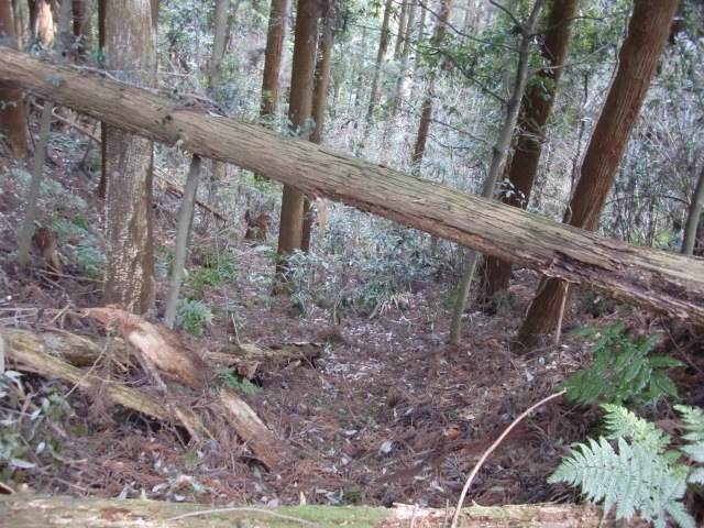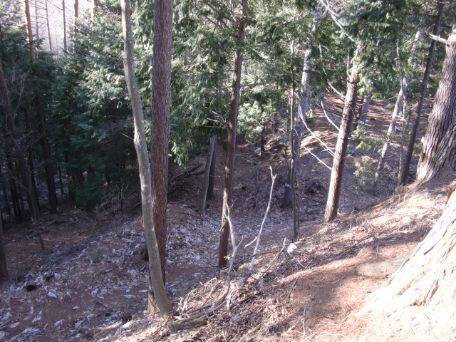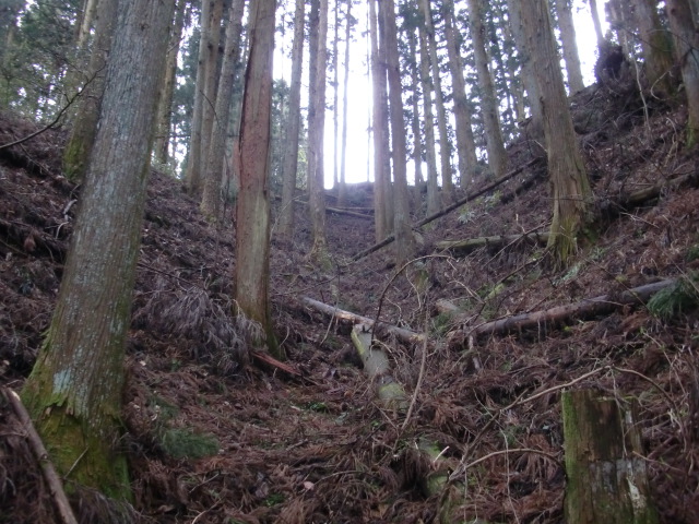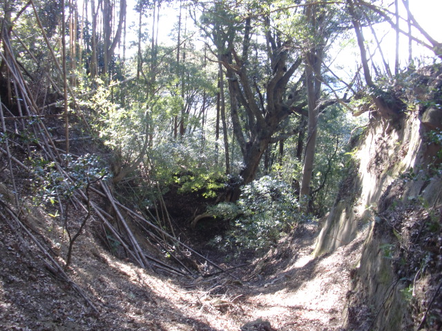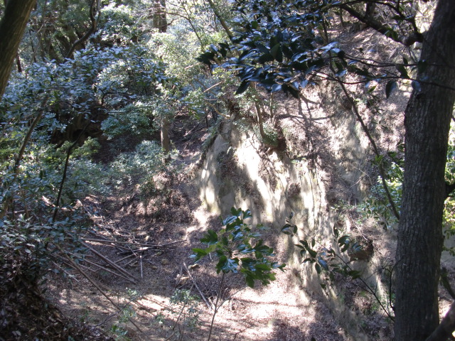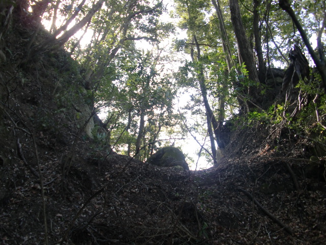 ルートをそれてそのまま東尾根を下って行くと豪快な堀があります(#^.^#)