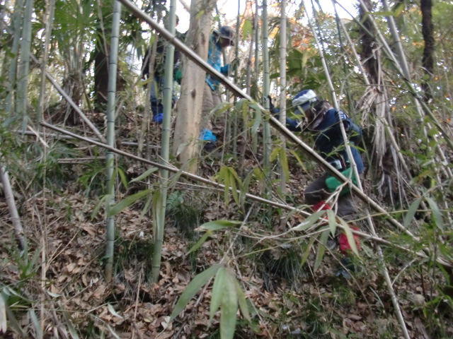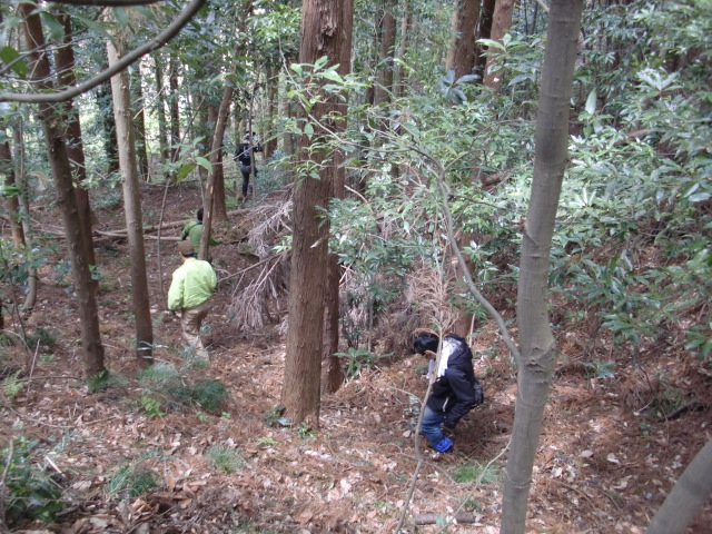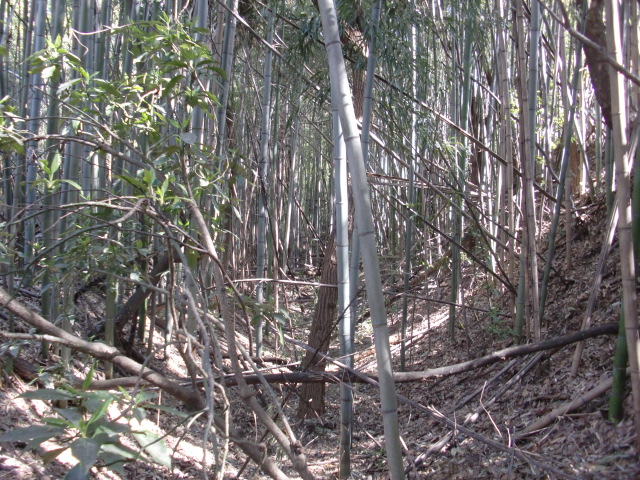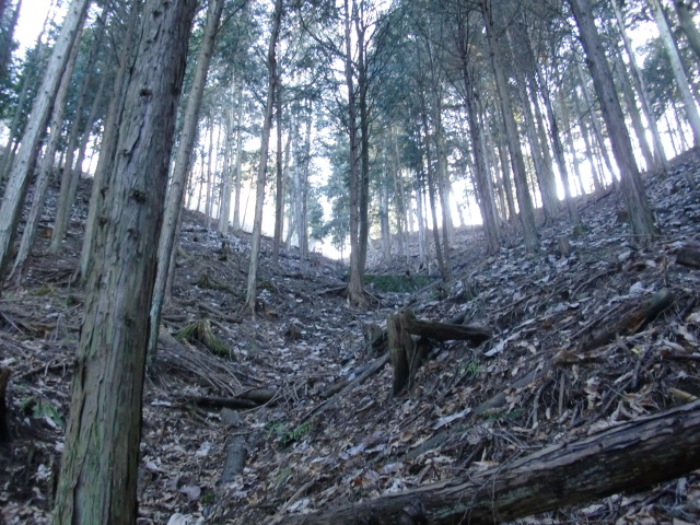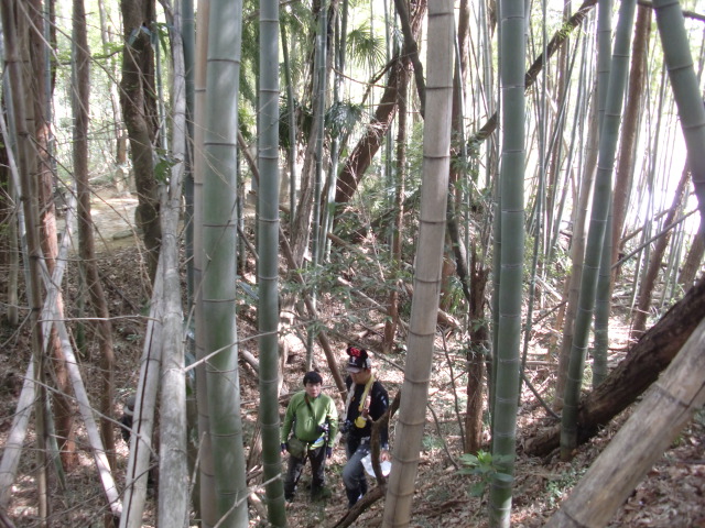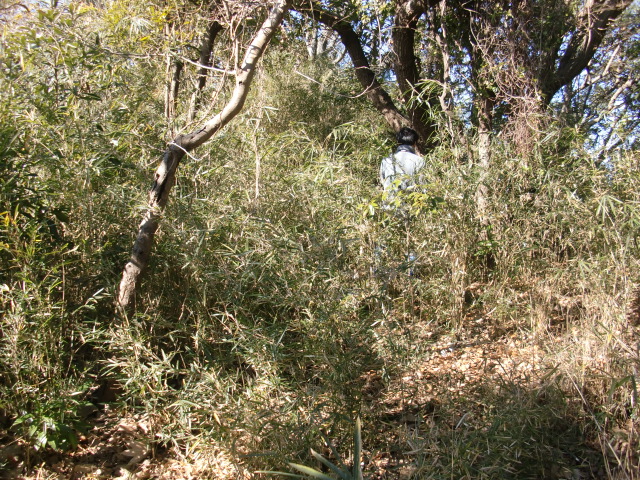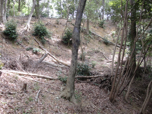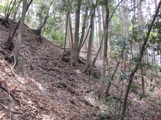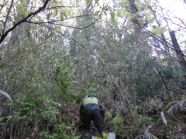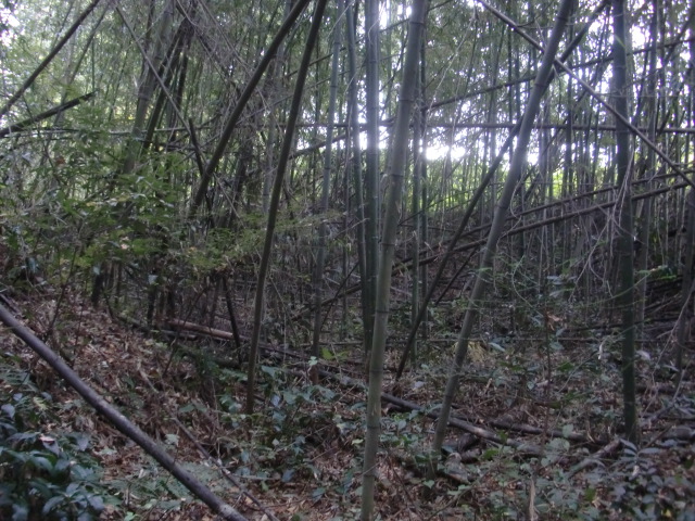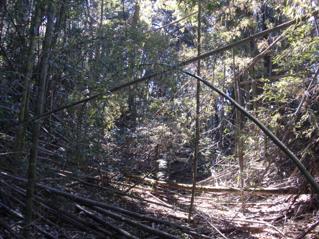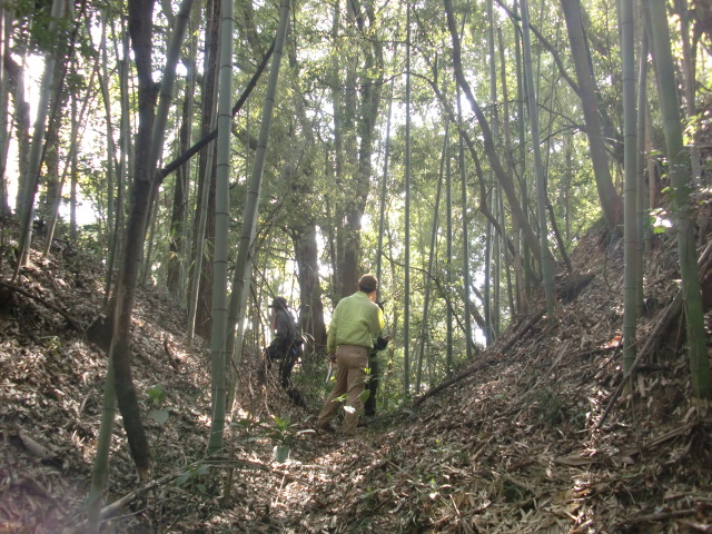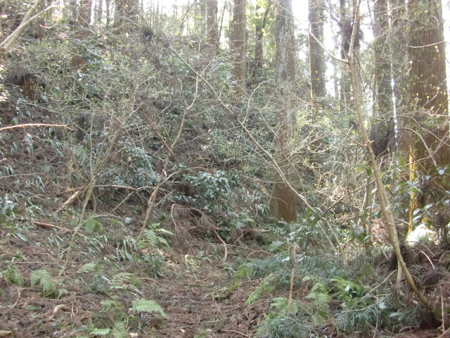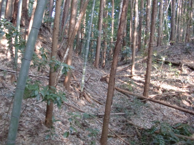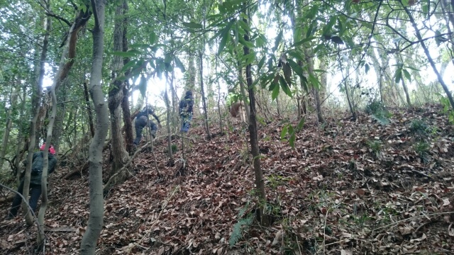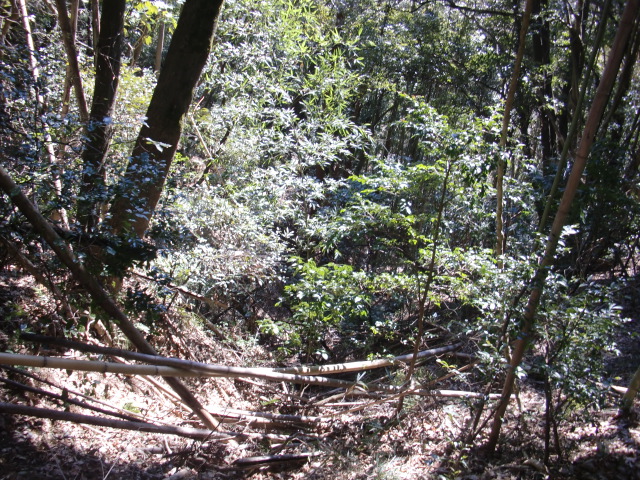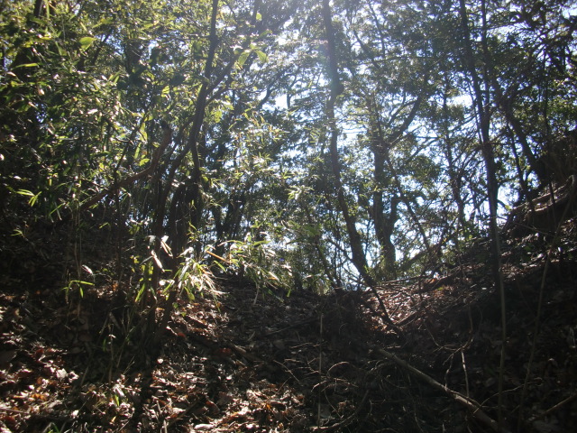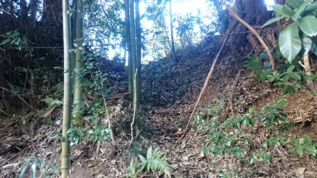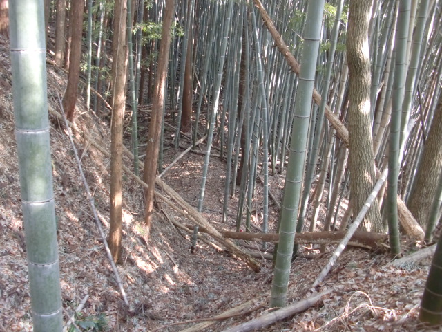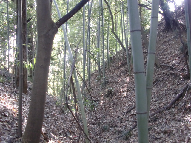 そのまま藪の主郭を抜けて北側堀へと斜面攻めへ・・・