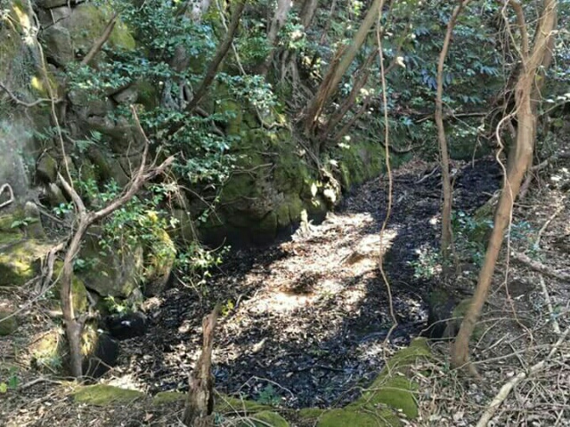 三重堀を戻り郭を南に戻りますが主郭西堀へと進まず西郭の藪漕ぎをして西に進むと藪の中に西堀が出現♪