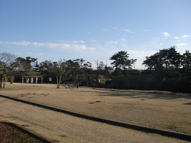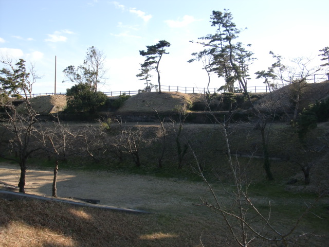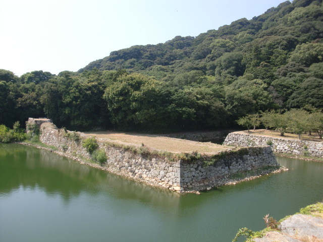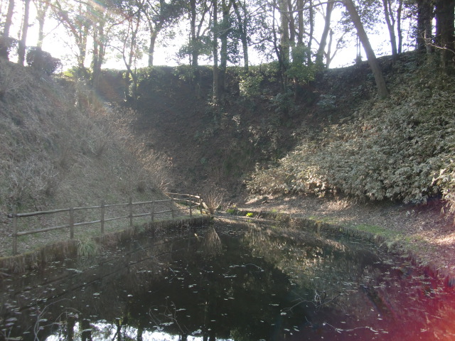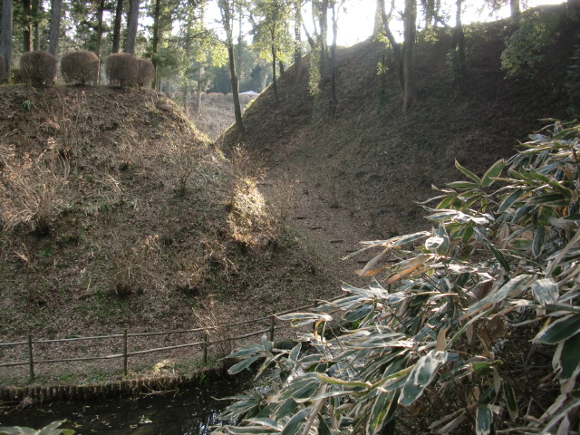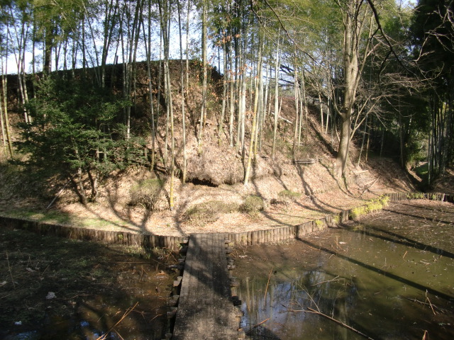 土塁を抜けると堀がありますが・・・