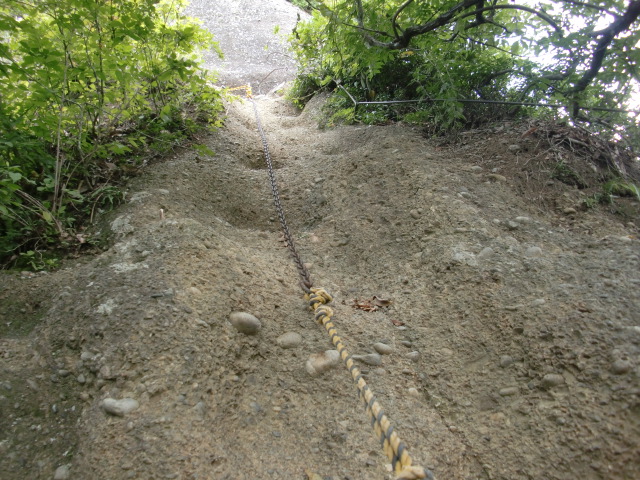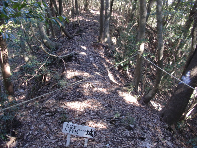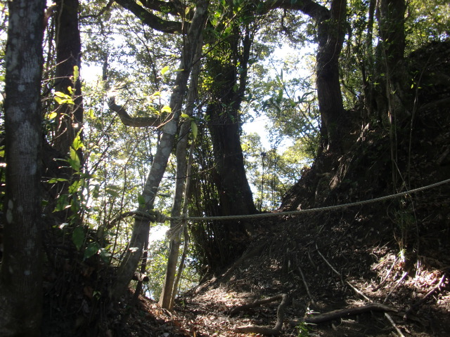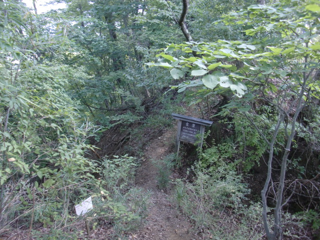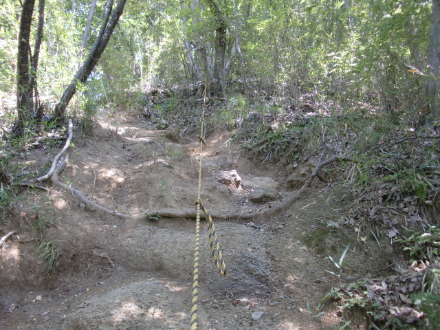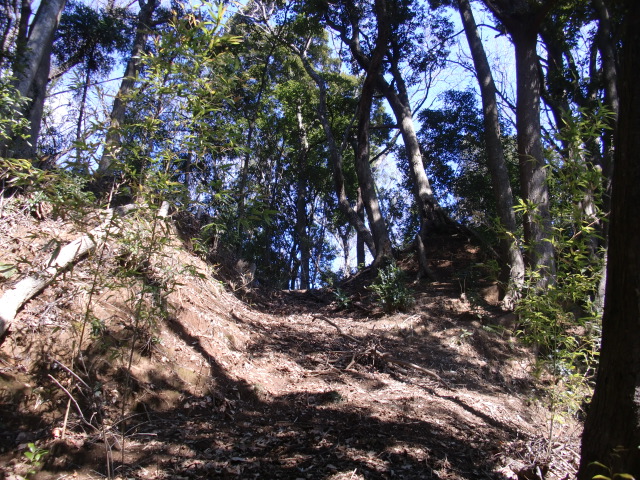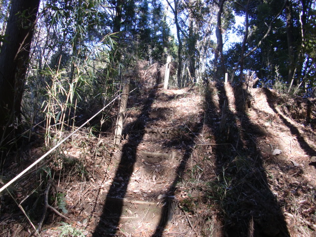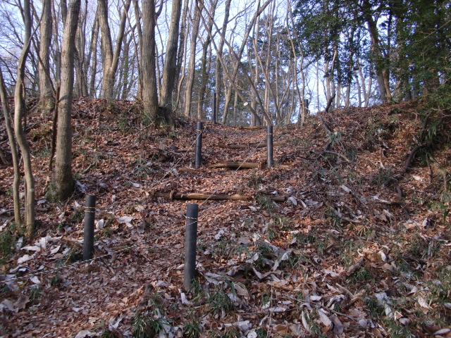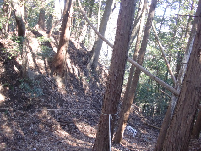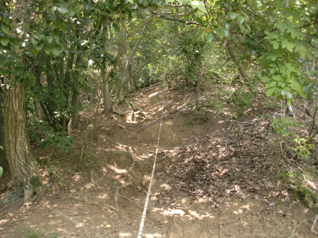 ロープのはられた急斜面を登ると堀があり、東側には竪堀も♪
