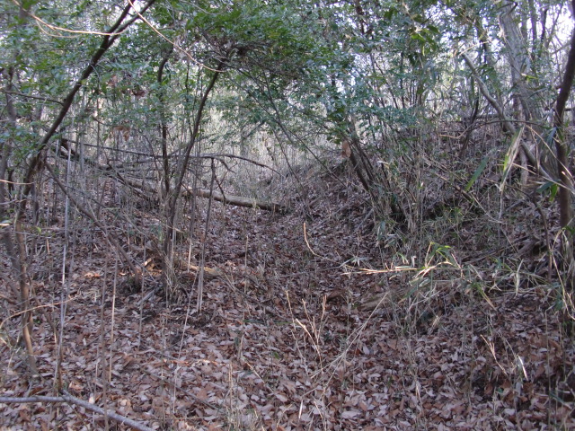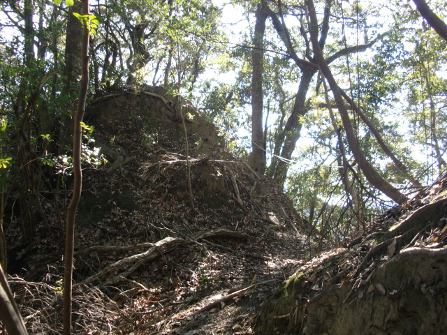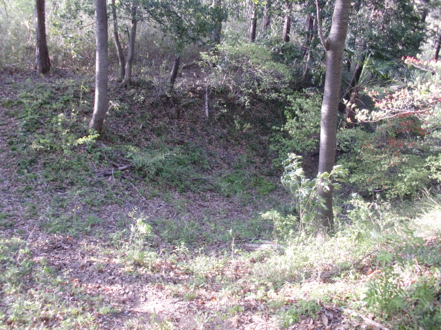 更に東に向けて藪郭を進むと東側に土塁があり・・・