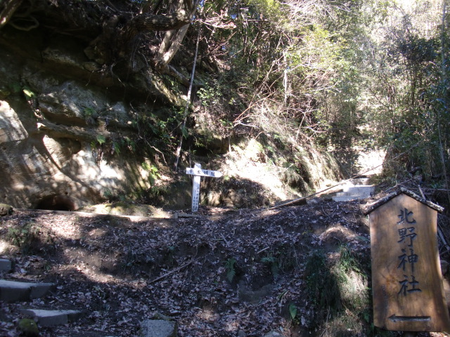 南総のお城に多い横穴墓を横目に北野神社の案内板に沿って進むと・・・