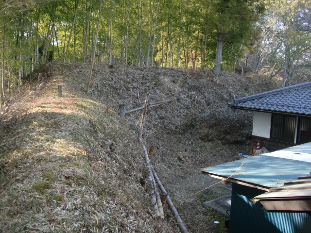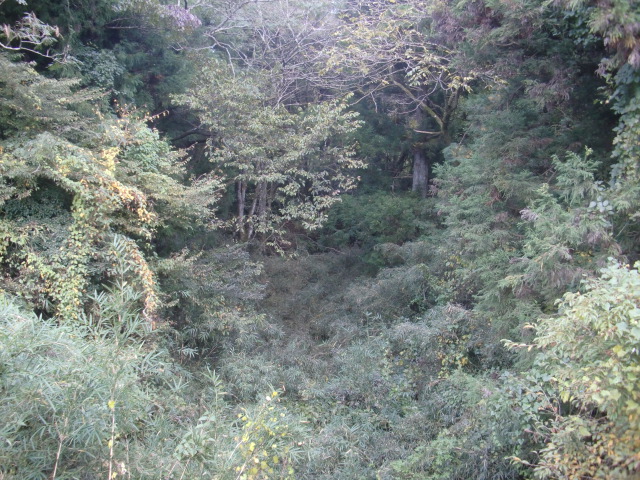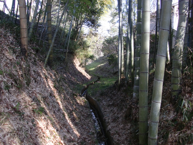 郭から堀を見ると南側で折れており、帰りに分かりましたが堀が折れた先は藪郭から民家へと繋がる郭群となります・・・