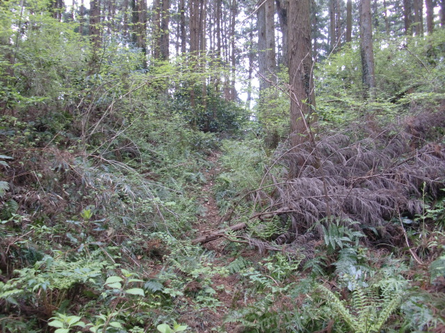 尾根へと上がり北へいくも大堀で分断され進めず東に向かう尾根を進むと登城ルートへと戻れます♪
