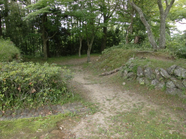 虎口を抜けると主郭ですが両サイドが盛り上がり堀底道のようになっており、抜けると枡形的なスペースとなってます♪