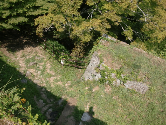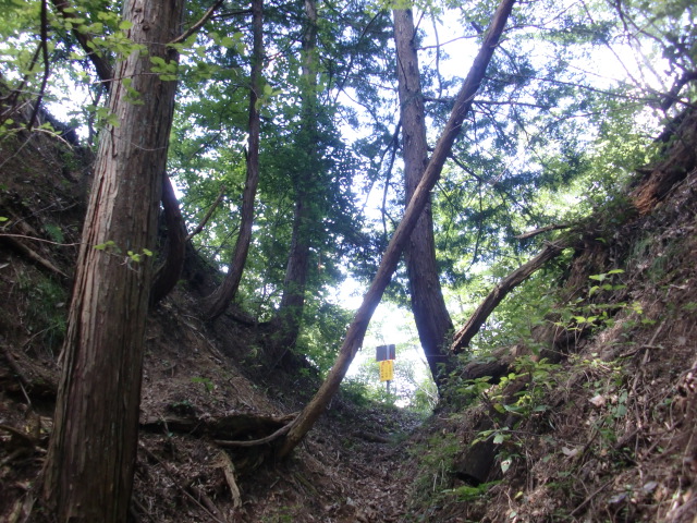 ぐるっとまわった東側から主郭虎口に進むとそんなに感じませんでしたが南郭から主郭虎口へ進むと傾斜がきつく虎口というか竪堀を登る感じですww