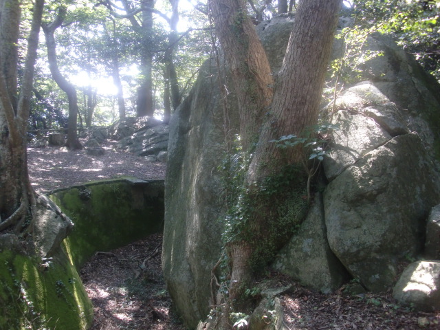 堀から東側を抜けて主郭を目指すと岩盤堀から繋がる尾根へと上がる虎口へと向かえ・・・