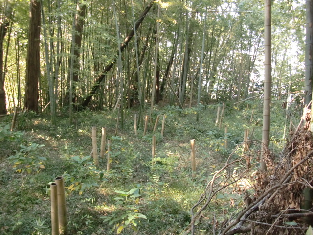 更に藪をかいて斜面を下ると畑として活用されている郭へ…