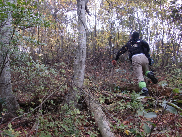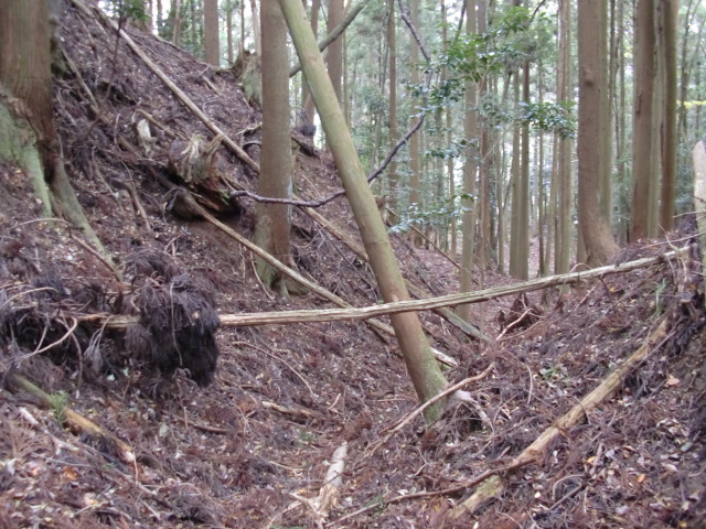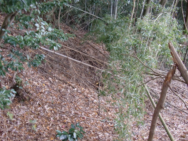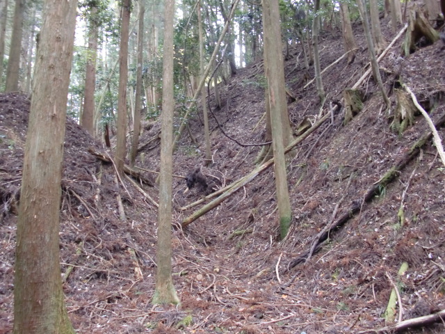 ガイドと別れた自分等はお茶屋跡郭を西にまわり西側斜面攻めをして藪の竪堀を満喫…