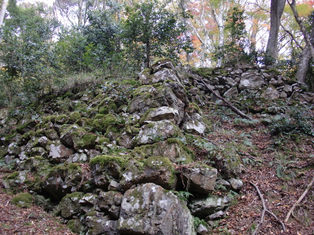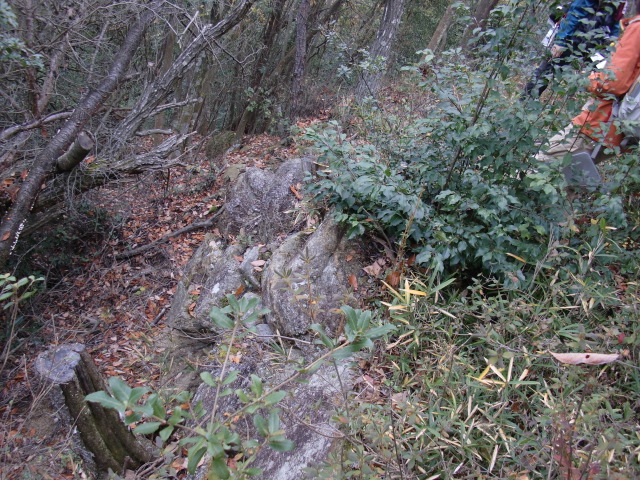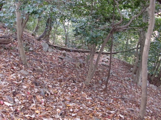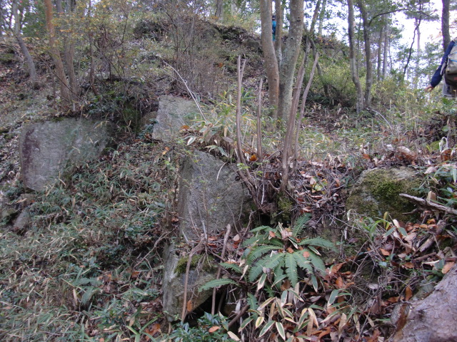 金吾丸から北側番所に戻り西側斜面を散策をするとちょいちょいと石垣が♪