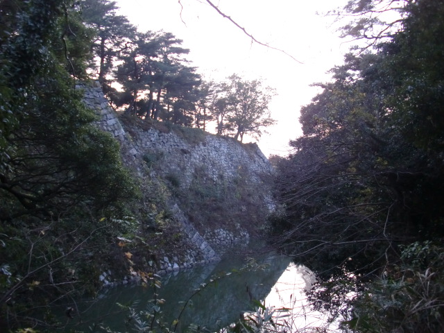 暗くなって来たので北側から土橋を渡り西側高石垣を堪能して…