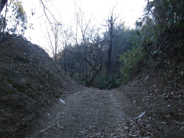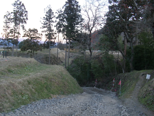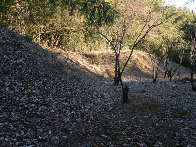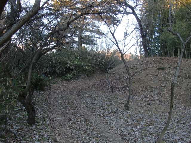 堀底を進んで行くと外側土塁に切れ目が・・・