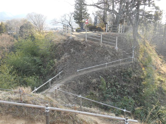 城址碑・案内板の背後には土塁があり、虎口を抜けると主郭北虎口に通じる素敵な土橋からのそのまま主郭北虎口へ!!