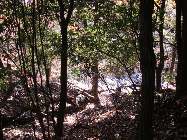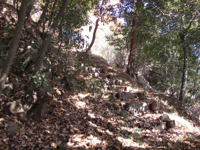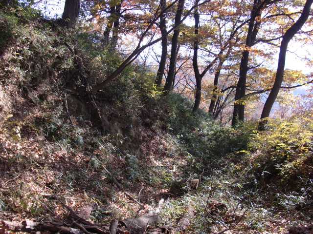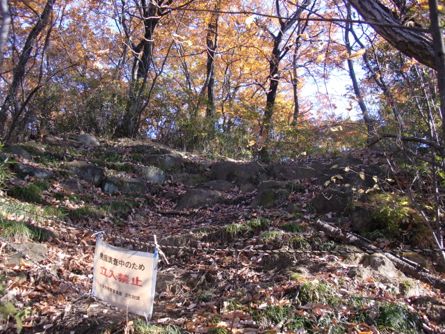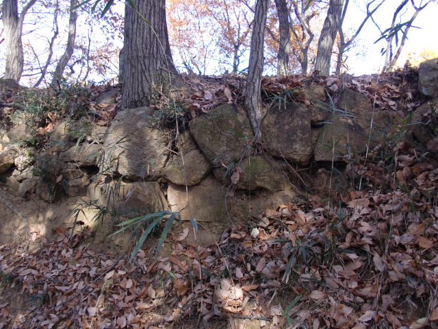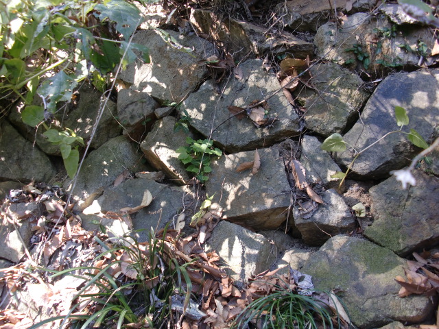 以前来たとき南斜面に現存のセットバックの石垣があるってガイドのおっちゃんが言ってたけどどこだろう・・・