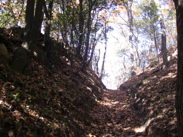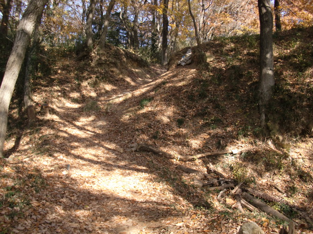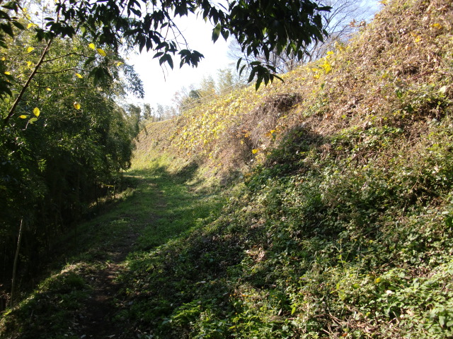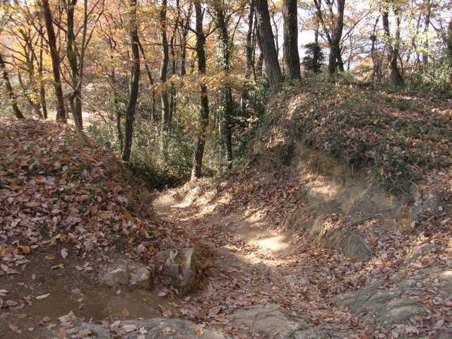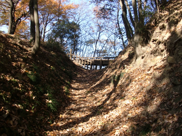 西櫓台を東に進むと大好きな岩盤堀&土橋\(^o^)/