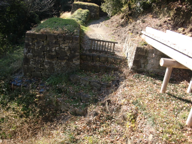 西櫓台南斜面に低い土留め石垣がありますがこれは遺構では・・・