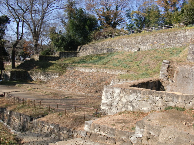 堀が綺麗に整備され、土塁には石垣も一部・・・